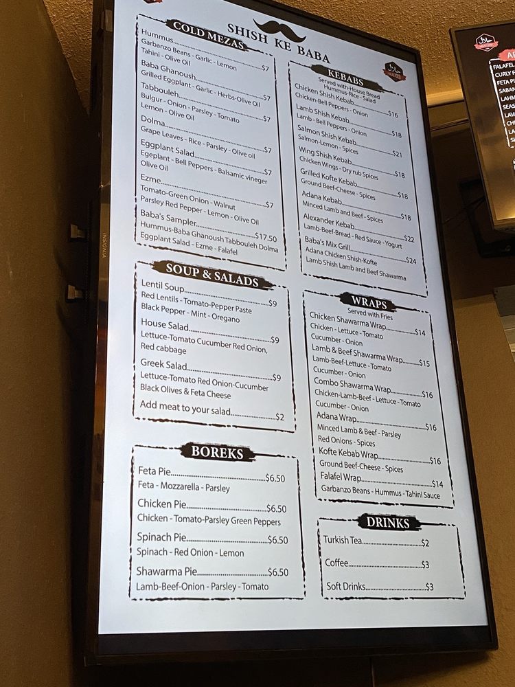 Lamb Kebab, Hummus, salad, pickles, tahini and hot sauce. Served over rice with salad or French fries.